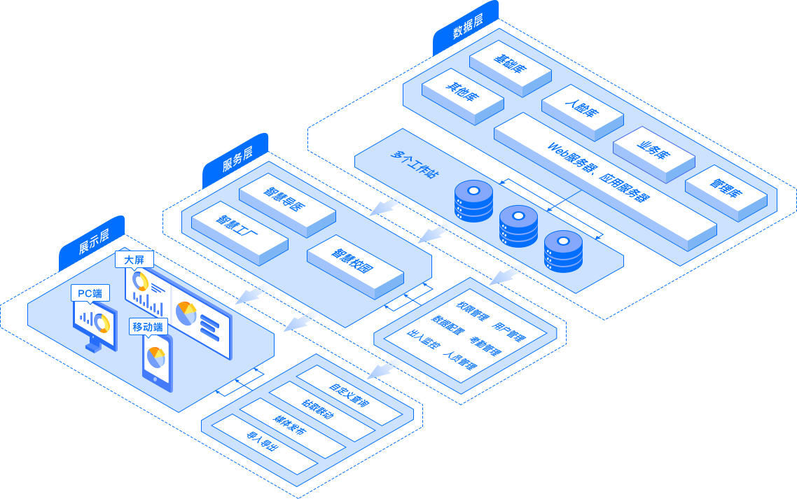 綜合管理云平臺系統(tǒng)基于TCP/IP部署,系統(tǒng)以B/S和C/S相互結(jié)合的方式,在管理層上采用B/S架構(gòu),實現(xiàn)了人員、車輛數(shù)據(jù)的錄入、修改、刪除以及數(shù)據(jù)查詢等操作,在應(yīng)用層采用C/S架構(gòu),操作簡單,界面友好,這樣組合可以使用B/S和C/S架構(gòu)各自的特點得到更加充分的體現(xiàn)和應(yīng)用,同時管理云平臺還可以與其他環(huán)境監(jiān)測等系統(tǒng)對接,實現(xiàn)系統(tǒng)功能應(yīng)用的延伸和拓展。